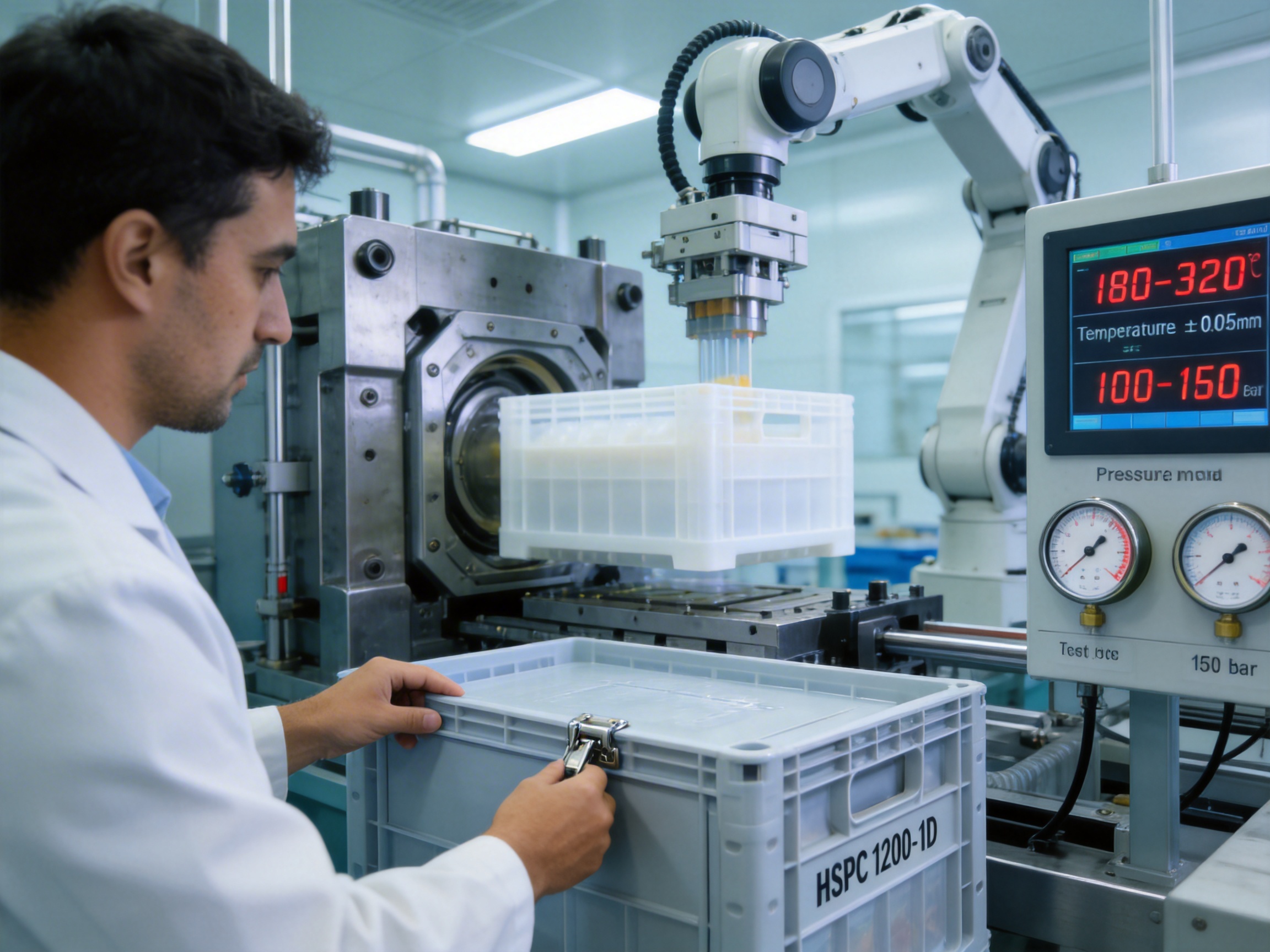 Temperature and Pressure Control: The injection molding machine maintains precise temperature (180-220°C) and pressure (100-150 bar) settings to prevent warping, bubbles, or incomplete filling. The cycle time is optimized to 60 seconds per crate, balancing efficiency with quality.