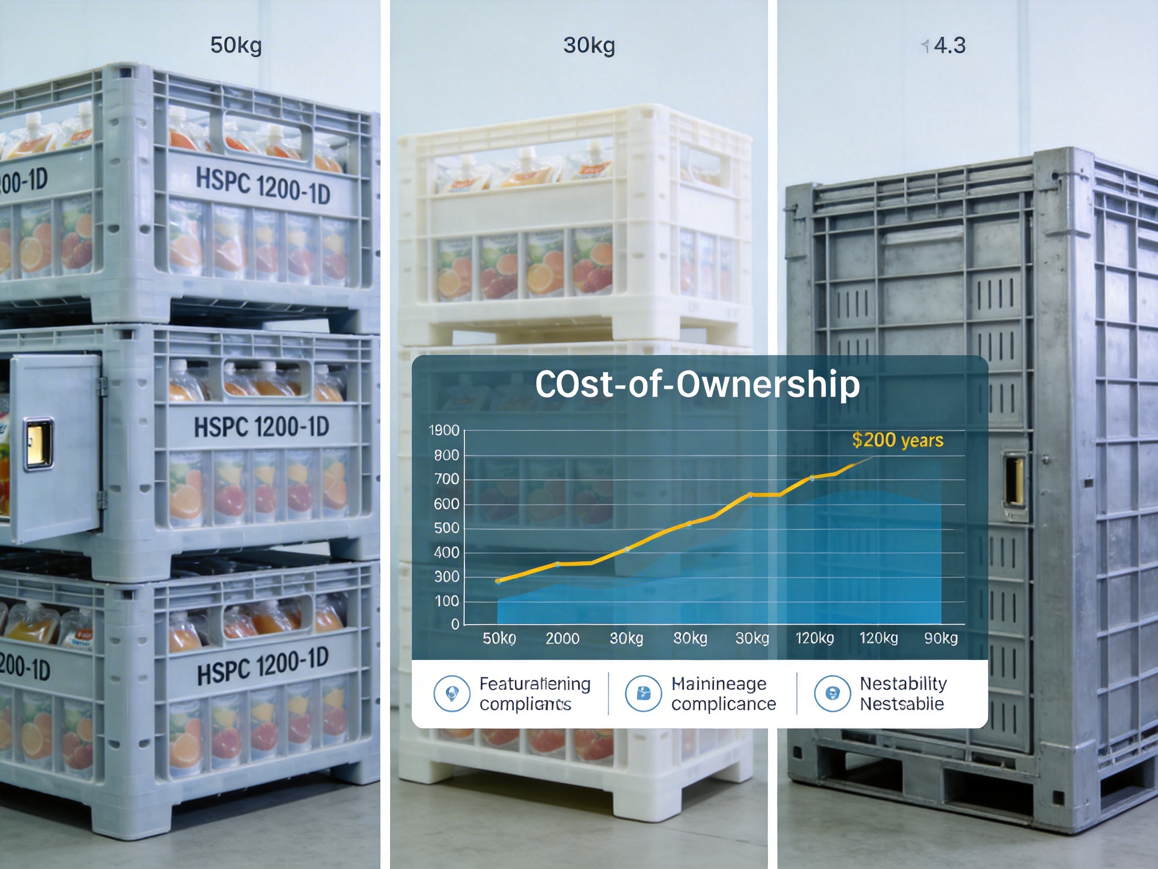 As the table shows, the HSPC1200-1D crate offers the lowest total cost of ownership over a 10-year period, thanks to its long lifespan and minimal maintenance requirements. It also outperforms competitors in hygiene compliance, space efficiency, and door access—key factors for modern industrial users.