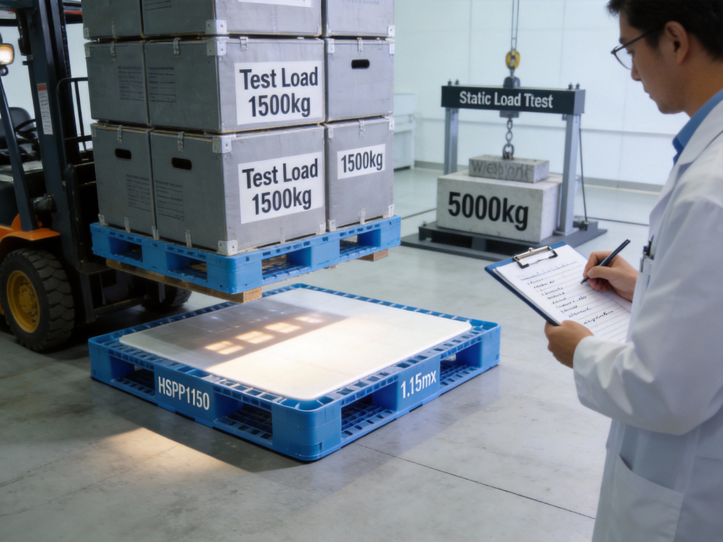 - Load Capacity Test: The pallet is loaded with weights up to its maximum static and dynamic capacities to ensure it can withstand heavy loads without deformation.