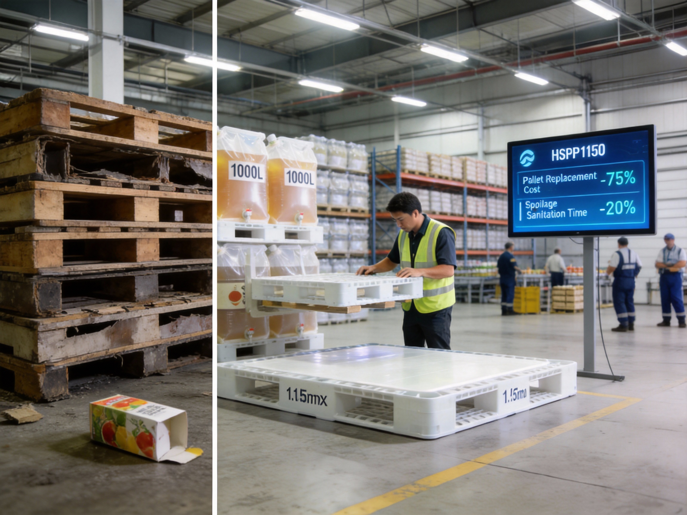The food and beverage industry is one of the largest users of the HSPP1150. Its hygiene and food safety compliance make it ideal for storing and transporting products like aseptic liquid packaging (e.g., juice, milk), condiments, jam, and oil. For example, a major European juice manufacturer uses the HSPP1150 to transport 1000L aseptic bags from its production facility to distribution centers. The pallet’s durability ensures that the bags remain intact during transit, while its easy-to-clean surface reduces the risk of contamination.